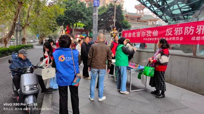 成都市青羊区西御河街道办事处在西御街开展反邪教宣传教育活动