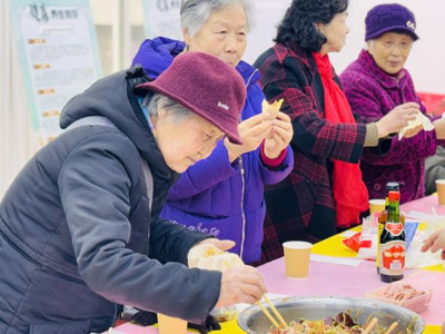 活动中,社区志愿者与老人们亲切交谈,氛围温馨如一家人。随后大家参与到春卷的制作过程中,从食材的精心切配到酱料的细致调配,每一步都伴随着欢声笑语,空气中洋溢着无尽的欢乐。老人们手法娴熟地包裹着春卷,同时继续着温馨的家常对话,场面温馨而又和谐。