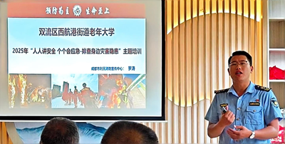 为进一步增强老年学员消防安全意识,提升应急避险和自防自救能力,5月22日,双流区西航港街道老年大学在二楼教室组织开展消防安全知识培训会。此次培训特邀成都市利民消防宣传中心罗涛老师担任主讲,培训会由西航港街道老年大学常务副校长高力主持,老年大学学员及教职工代表近40人参与学习。