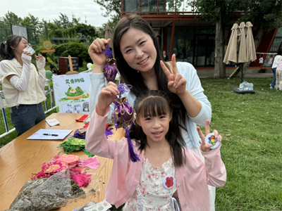 手工体验区弥漫着清新的粽叶香气,不同年龄段的参与者们围在一起,包粽、巧制香囊,指尖翻飞间传递着传统技艺的韵味。空气中飘散着粽叶的清香与艾草的芬芳,传统与现代在这个空间里自然地交融。现场欢声笑语,交织成一幅生动的社区文化图景。