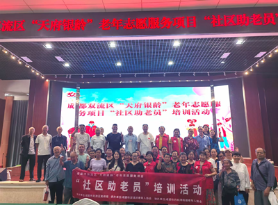 2025年9月2日上午9:00,成都市双流区“天府银龄”老年志愿服务项目生活支持“社区助老员”培训活动第一期在西航港街道九龙湖社区大礼堂顺利开展。双流区老年人协会会长瞿顺予、监事长陈兰,以及“天府银龄”志愿者、西航港老年人协会的成员和西航港街道辖区内54名居民群众,共同参与了此次培训。