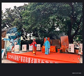 活动现场锣鼓喧天氛围热烈,在好听的锣鼓声中拉开了表演序幕,这场活动演员们带来了一、《访友》,二、《霸王别姬》,三、《二美上路》,四、《三家店》,五、《土牢》,六、《乌江逼霸》等,这些折子戏的婉转唱腔与细腻身段尽显川剧韵味,这些川剧绝技赢得大家满堂喝彩;其中,大家非常熟悉的川剧《访友》是比较经典的剧目,主要讲述了祝英台女扮男装前往尼山攻书,与梁山伯情投意合,柳荫下结为兄弟。英台归家后,山伯如约前往祝家庄访友,才知英台身为女儿身,并已被其父许与马家。