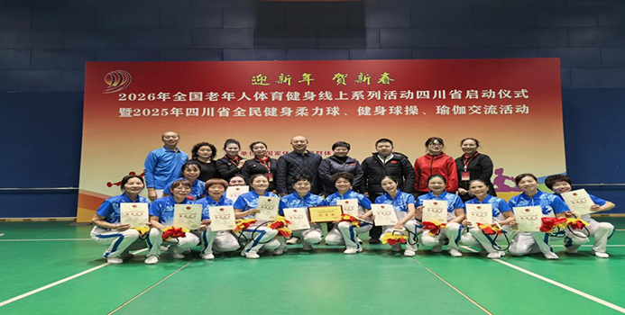 2025年12月19日,在成都市武侯区四川省老年人活动中心举办的“2026年全国老年人体育健身线上系列活动四川省启动仪式暨2025年四川省全民健身柔力球、健身球操、瑜伽交流赛活动”现场,成都高新区中和街道龙灯山社区老体协健身球队的12名队员,凭借健身球规定套路《一二三四歌》的精彩演绎,在同曲目三支参赛队伍中脱颖而出,夺得该项目第一名,总排名第六名。