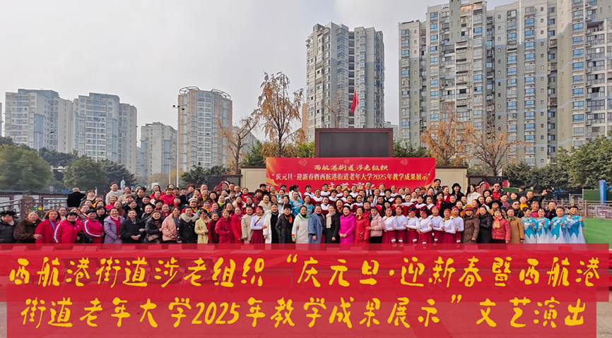 12月28日,由成都市双流区人民政府西航港街道办事处指导,西航港街道关工委、老体协、老协会、老龄委、老年大学联合举办的庆元旦迎新春暨教学成果展示活动在西航港街道综合文化活动广场隆重举行,街道关工委班子成员、28个节目近600名参演人员以及现场观众共800余人共同见证了这场欢乐、温馨、富有活力的文化盛宴。