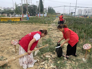 随后老体协会员身着志愿者马甲一起来到社区睦邻田园,分两组开始整治活动,一组拿着扫把对菜地门口及纵一路路口地面进行清扫,另一组拿着垃圾袋对菜地的碎石、白色垃圾进行清理。