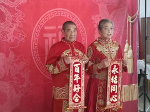 拍摄现场笑声此起彼伏,大家脸上都洋溢着开心幸福的笑容。摄影师用镜头记录下他们携手与共的甜蜜爱情。70岁的金叔叔感叹时光飞逝,年轻的时候没条件拍婚纱照,如今年纪大了,刚好借着这个好机会,今年也是她们结婚50周年,也算有一个甜蜜祝福。