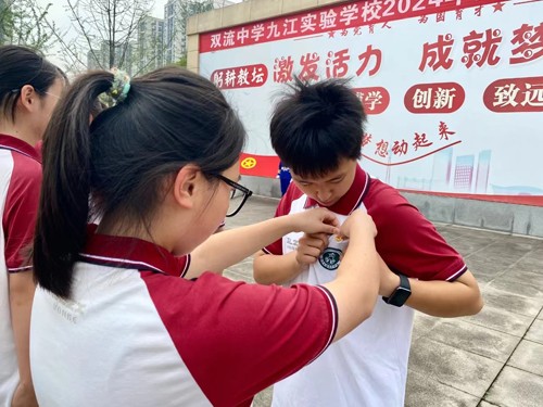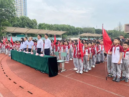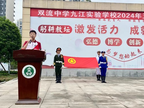 在五四青年节来临之际,双流区九江街道双流中学九江实验学校隆重举行了五·四离队入团仪式。本次活动在本部操场进行,参会人员有学校党员代表、共青团员和全体少先队员。