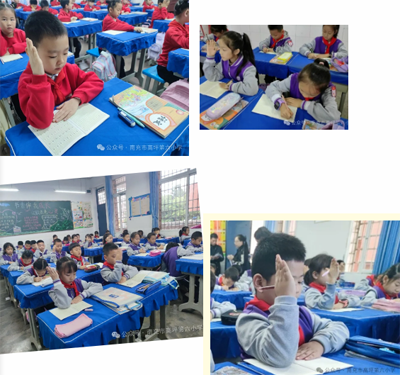 “要发言,先举手,同学讲,认真听。”课堂中,孩子们认真听讲、积极举手回答问题,发言的孩子声音洪亮、表达清晰,其他孩子安静聆听,一动一静构成了教室最美丽的画面。