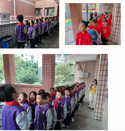 排队做到快、静、齐!头正、身正,一个个精神抖擞,笔直的队伍排列在操场,似威武的小战士等候检阅。