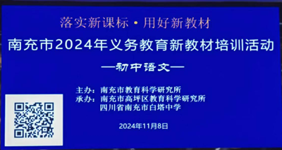 为深入贯彻国家基础教育课程改革精神,进一步提升南充市初中语文教学质量,促进教师对最新教材修订内容的理解与把握,2024年11月8日南充市2024年义务教育阶段初中语文新教材培训活动在四川省南充市白塔中学举行,来自全市各区县的初中语文教研员和骨干教师参加了本次活动。本次活动分为专题讲座和示范课两个阶段。