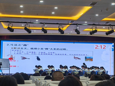 德阳中学王璐老师、嘉陵一中罗珍老师、五星教育集团杨越铭老师先后进行了示范课展示。王璐老师的“《朝花夕拾》整本书阅读”示范课以“鲁迅生命成长中的重要他人”为课堂主线展开教学,让学生以此寻找重要的他人,制作任务卡片,罗珍老师执教《小圣施威降大圣》,带领同学们“趣”看神仙斗法,课堂趣味性很强。杨越铭老师执教《我的白鸽》示范课,课堂中杨老师以“我与白鸽”为主线分为三个板块:一段关系,一种付出,一片心声,注重情感培养,让学生在课堂上课本中领悟情感。三位老师都践行“以老师为主导,以学生为主体”的教学思想,深挖教材,课堂气氛活跃,学生积极性非常高,展现了语文课堂教学的高水平,迎来了听课老师们的阵阵掌声。