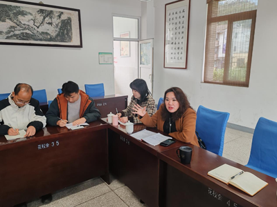 花水湾学校校长陈方贵介绍学校概况和面临的问题,他指出教育联盟发展共同体是大邑教育高质量发展的重要举措,是促成三校携手合作,共谋山区学校发展的推动力。强调两校要深入开展学科联合教研,加强教育教学资源共享,强化新教师培养,陈校长还就教育联盟工作细节与实验中学干部教师进行交流和探讨。