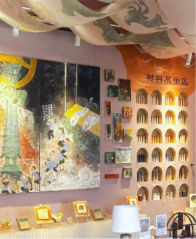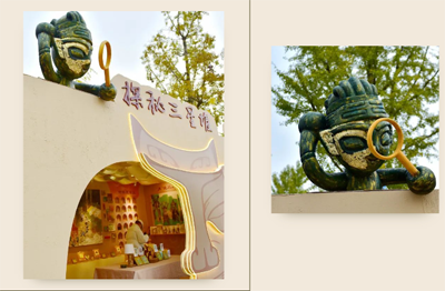 国画则以有趣的场景和绚丽的色彩,展现了三星堆文明与现代生活的自由畅想。每一个画面都栩栩如生,让人仿佛可以自由地在三星堆的古老城邦与未来生活中来回穿梭。