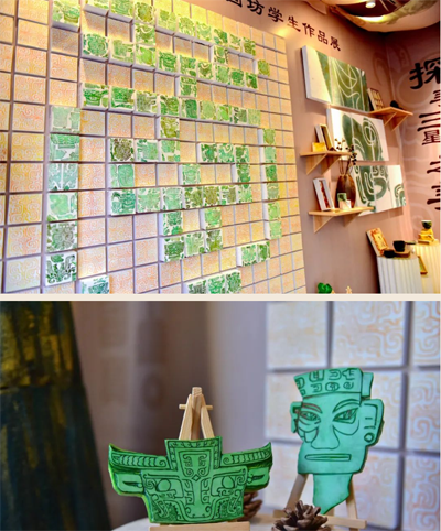 而篆刻作品更是小巧精致,方寸之间尽显乾坤。孩子们精心雕琢的印章,刻画出三星堆独特的图案和符号,展现了他们精湛的技艺和对细节的把控。