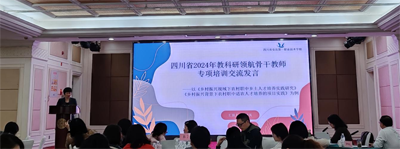 为深入贯彻落实《四川省教育厅关于做好 2024 年教师培训委托项目实施工作的通知》文件精神,由四川省教育科学研究院承办的教科研领航教研骨干教师专项培训,于 2024 年 11 月 4 - 9 日,在成都市双流区广都国际酒店举行。全省 21 市(州)级、县(区、市)级中小学省级100位教科研骨干教师,参加了此次培训。四川省教育科学研究院院长廖德斌、科研管理所所长牛琴出席开班仪式并讲话。
