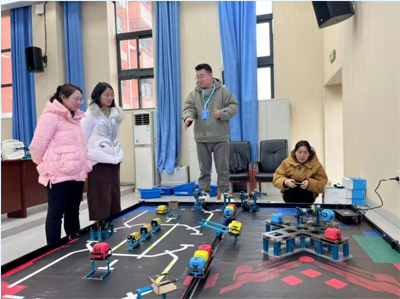 在现场实训中,参培教师在“无人机普及赛”、“AI智慧生活”、“ENJOY AI”、“星球大战”和“MakeX-全芯征途”5个分会场参加包括组装设备、编程、调试和优化的实训,熟悉器材和比赛规则,提升科创思维和信息素养。