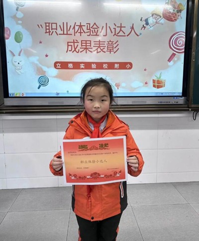 老师认真聆听了同学们的分享,最终每个班选出了三位在本次活动中表现出色的小朋友,被授予“职业体验小达人”称号。