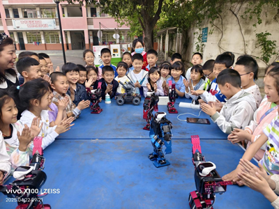 篇章一:机器人互动表演。佰章小学操场舞台上的机器人在旺苍县科协科普宣传员蒋勇的指挥下,随着音乐响起,开始表演《拔萝卜》《动感街舞》《广场舞》《小青蛙》《广播体操》等等舞蹈。机器人的精彩表演把参加活动的师生带入到了机器人高科技时代。机器人表演现场不断响起学生的欢呼声和掌声。同时在科技老师指引下开展了学生与机器人之间的“人机对话”活动,学生现场对机器人提问,机器人机智幽默、对答如流的回答引起了现场学生一片片欢笑声。零距离让广大学生感受到机器人的智能和现代科技的力量,给广大学生上了一堂生动的机器人科普知识课。