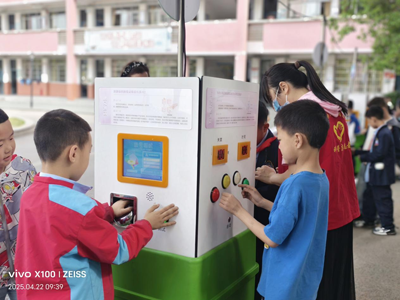 篇章三:体验科普器材。在科普志愿者孙小玲老师的引导下,该校2000余名学生分年级分批次有序到活动现场参加科普体验活动,包括对《能力测试》《数有其律》《物有其妙》《健康生活》等等专题科普器材的沉浸式体验。还有VR眼镜里,宇宙触手可及;当好奇的眼眸遇上天马行空的想象,当稚嫩的小手触碰未来科技的脉络,实验的微光将照亮知识的长廊,机械的齿轮会奏响智慧的乐章。