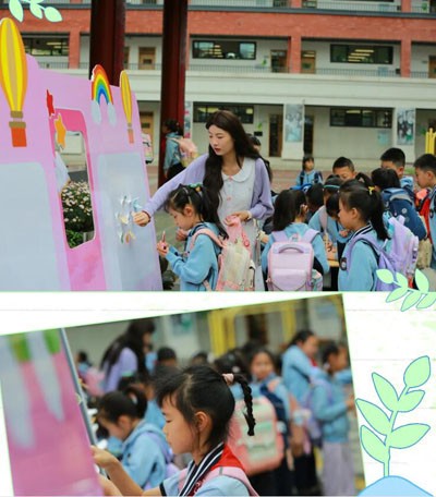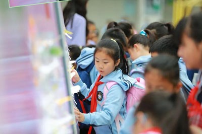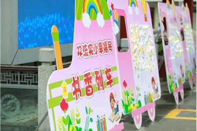 春日的暖阳里,孩子们踮着脚尖,小手攥着彩色便利贴,郑重其事地写下自己钟爱的书籍名字。