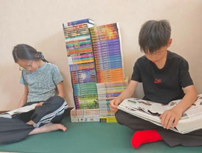 阅读的温暖从校园蔓延开来。公园里、列车上、图书馆都留下孩子们阅读的身影。孩子们纷纷晒出日常与家中书架的合照,书架上摆满各类书籍,像一座童话城堡。