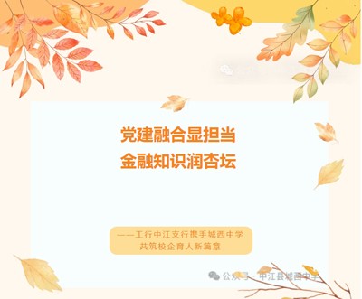 “育才造士,为国之本。”教育是民族振兴的基石,企业是社会发展的砥柱。当金融智慧浸润菁菁校园,当党建红心照亮育人之路,一场名为“党建融合显担当,金融知识进校园”的客户沙龙活动,于2025年11月7日在城西中学美术室温情启幕。此次活动由工行中江支行与城西中学联合举办,以校企共建为纽带,既彰显企业回馈社会的责任担当,亦体现学校深化内涵发展、提升教师幸福感的办学追求。