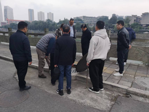 调研先是参观考察中河星月湾西家坝提排水工程、中河岸三江社区地下管道工程和毗河月亮岛拦河坝及生态水城南岸排水系统工程的建设情况。调研组采取边看边听边问的方式进行考察。