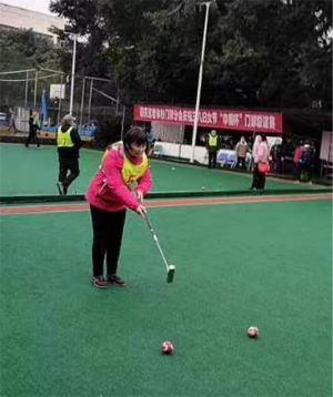 赛场上,参赛运动员神情专注,用心投入,双手握锤,挥杆对垒。过门、侧击……二门、三门、碰击中柱。队员潇洒自如神态,敢打必胜的信心,完美精湛的球艺博得场外球员的阵阵掌声,显示门球健身运动的魅力和中老年人参与全民健身运动耀出真我的精神风貌。已经80高龄队员张玉清在场上行如流云的动作,完美无瑕的球技赢得观众阵阵喝彩。张玉清说,她参加门球运动30余年,门球运动是她后半生健身运动的唯一爱好,潜心研究门球技术战术,养成了做事爱用心、肯动脑的良好习惯,身体健健康康。她表示,要继续发挥余热,宣传门球健身运动益处,普及门球运动知识,动员更多的中老年人参加门球健身活动,并做好传帮带,为顺庆全民健身运动奉献余热。