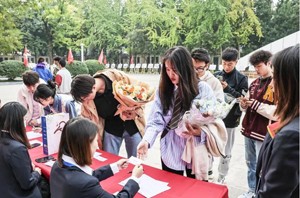 立格实验中学部执行校长龙清明带领学生为教师代表献上鲜花。