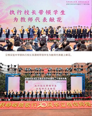 上午9:40,成都立格实验学校建校20周年庆典在学校运动场举行。