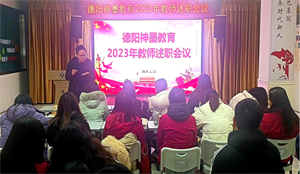1月23日,德阳神墨教育党支部、德阳神墨总校举行2023年度主管暨全体教师述职会议。学校全体主管和教师参加会议。