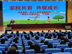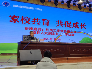1月27日,南充市营山县关工委常务副主任宁幼康在希望中举办的“家长学校”培训班上作《家校共育,造就时代英才》辅导报告。