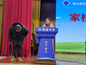 希望中学校副校长、关工委常务副主任文海主持家长学校培训活动。(通讯员 营山县关工委 邓精华)