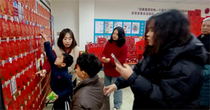 按照规则流程,孩子们分别在完成挤眉弄眼“吃元宵”、火眼金睛“点元宵”、龙运当头“摸福气”后,与家长来到猜灯谜、抽奖活动的现场。孩子们从红包墙摘下一个个装有不同种类奖品礼单红包,在发奖台领取相应的奖品后,高高兴兴的来到“元宵快乐”主题背景处,拍照留下“闹元宵”开心快乐的瞬间。