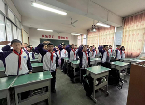 少先队员们观看雷锋叔叔英雄事迹纪录片