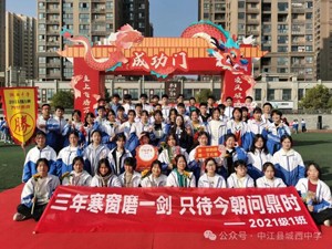 秦王点兵,兵勇将威猛;城西学子,出征气正足。邓艳校长与九年级7班何圳林同学一起为“中考冲刺倒计时”揭牌。从此,九年级的学子们再无退路,只将奋勇向前,指摘日月。