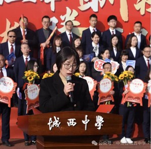 旌旗扬,号令催,百日炼真钢。战旗是前进的风向标,今天,羊崎书记将这点燃斗志的火种交与何志生主席。何主席接下战旗,挥舞战旗,立下目标。在此刻,这战旗代表的是城西中学全体师生的奋斗、责任与梦想!