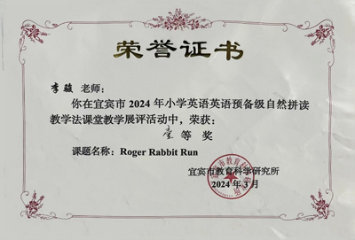 3月21日上午,我校英语教师李骏代表兴文县参加了宜宾市英语自然拼读比赛,经过激烈角逐,获得了一等奖。