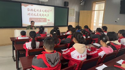 3月18日下午,彭州市关工委五老宣讲团成员、退伍老战士丁穆松到濛阳小学开展爱国主义教育宣讲活动。年过古稀的丁穆松是原中国人民解放军 34556 部队的一名老退役军人。其所在的部队,曾经参加过援越抗美出国作战。丁爷爷给濛阳小学六年级五个班的少先队员们讲述了援越抗美战场上指导员赵竹明的一些亲身经历和收集到的战场故事。少先队员代表50人参加了宣讲课,濛阳小学副校长廖述维、校政教处主任蔡强、市关工委工作人员罗强参加了活动。