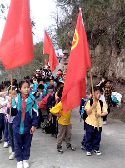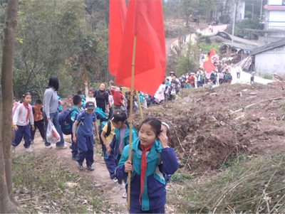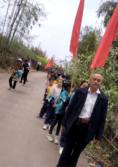 铜鼓镇中小学100名师生,扛着团旗、队旗,在退休农艺师、县老科协“三农”专委会副主任、镇关工委主任罗帮建等老专家带领下,怀着沉痛的心情,首先来到革命烈士任高明74年前牺牲的地方一一川南著名寺庙苦竹寺,举行了悼念活动。黙哀敬献鲜花后,罗帮建向在场的师生们讲述了任高明烈士的英雄事迹。他为了人民的翻身解放,随解放军83团从河北家乡辗转来到长宁,参加清匪反霸、征粮剿匪等战斗不幸英勇牺牲。