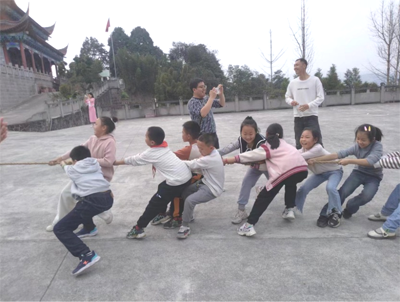 在苦竹寺广场,师生们还开展了接力棒传递,拔河比赛等活动,欢呼声、加油声此起彼伏,回荡在广场上空。