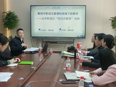 评课之后,开展了聚焦“职教高考复习和课程改革”的专题讲座3个。工作室青年成员、四川省中江县职业中专学校的杨辉老师带来了《古诗送别诗之特点与答题策略——以2023年统考题送王朗为例》讲座。杨老师从认识送别诗、送别诗鉴赏答题技巧、链接高考三方面详尽分享了送别诗的答题策略。工作室成员、攀枝花市经贸旅游学校的明安丽老师作了《中职语文对口高考后期复习技巧》讲座。在讲座上,明老师从对照纲标、明确要求入手;以“题”为鉴讲解了答题方法;介绍了快速作文技巧、应试技巧并提出了规划合理的复习时间。工作室领衔人、资中县职业技术学校傅洪成老师作了《解读中职语文新课标视域下的教学——以“项目式教学”为例》主题报告。傅老师从“新课标视域下的中职语文教学要求、新课标视域下的中职语文教学实践、走近中职语文项目式教学、《中国人民站起来了》《长征胜利万岁》项目式教学”四个方面作了讲解,既有深刻的理论知识又有具体详细的案例分析。