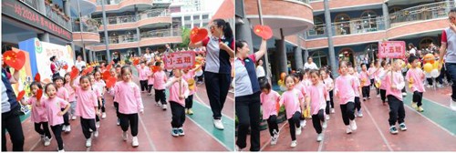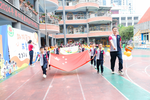 伴随着《运动员进行曲》,国旗队、园旗队和各个班级的小小运动员们穿着整齐统一的园服,迈着自信的步伐,高喊着运动口号,雄赳赳气昂昂地进入运动场地。