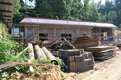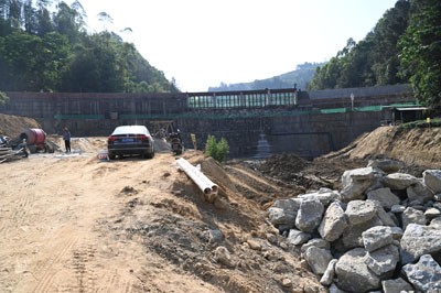 记者看到,已经拔地而起的管理房,位于在大坝下方约100米处,这是该水库过去没有的设施。