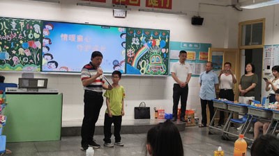 受镇党委政府的委托,“五老”们来到三年级四班,特别看望了失去父母的小易同学。为小易送上了口杯、太阳伞、本子等贴心礼物,鼓励他要坚强乐观,勇敢面对生活中的困难。小易接过礼物,眼中闪烁着感动的泪花,脸上露出了灿烂的笑容。
