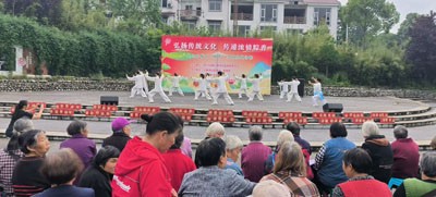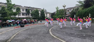 活动现场,文艺表演精彩纷呈,包括广场舞、健身操、太极拳、太极剑、健身球操及合唱等节目,赢得观众阵阵掌声。此外,龙门山镇卫生院的医护人员为辖区老年群体提供了免费量血压、测血糖、口腔检查等服务,并针对夏季常见疾病进行健康答疑,耐心解答老年群众的健康咨询,提供专业医疗建议。