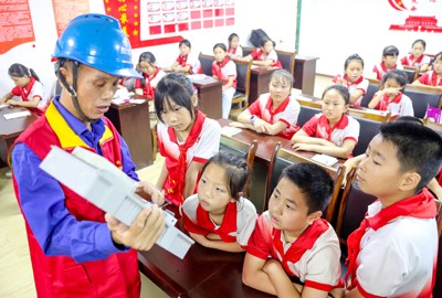 国家电网四川省华蓥市供电公司针对山区留守儿童、留守老人相对较多且缺乏安全用电常识等现象,在第24个全国“安全生产月”活动中,紧扣“人人讲安全、个个会应急——查找身边安全隐患”这一主题,组织专门的小分队巡回到乡镇中心学校和村小,开展“电力科普进校园,科学用电伴成长”宣传教育活动,引导学生养成良好的安全用电习惯,增强自主识险、避险能力,守护农村“一老一小”重点群体用电安全。