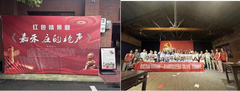2025年6月18日上午,成都市双流区经济开发区党工委,党群服务中心全科室工作人员,在杨威部长的带领下,特组织工业园区各企业党代表46人,一行前往双流区黄龙溪镇嘉禾庄社区、红色茶馆共同观看了沉浸式红色情剧《嘉禾庄的枪声》强化党员干部党性教育为主题的党日活动。