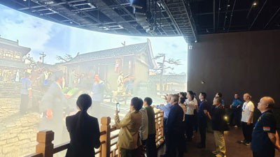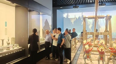当日上午,40名采风团成员驱车前往位于华蓥市工业园区的四川玄武岩纤维新材料研究院,参观考察玄武岩产业发展情况;随后,采风团一行到四川领神航新材料科技有限公司,参观考察低空经济发展情况;在四川瀚海精密制造有限公司,参观考察企业高新技术研发创新、现代化生产管理及多元化销售布局等情况。采风团一行还前往华蓥禄市梨现代农业园参观考察蜜梨产业助推乡村振兴发展情况。每到一处,釆风团成员们都认真听取现场负责人情况介绍,仔细观看车间生产现场,感受建设者的智慧和辛劳,激发创作灵感。之后,采风团一行风尘仆仆前往广安市博物馆,参观考察博物馆建设情况,听取广安市博物馆解说员讲解,感受广安历史变迁和发展印迹。当天下午,采风团一行前往位于广安区协兴镇牌坊村的广安市建川博物馆参观,察看了川剧博物馆、搪瓷博物馆、对视——镜界体验馆建设运营及文旅产业发展情况。随后,大家前往广安区佛手山食品有限公司,参观考察邓家盐皮蛋生产运营情况。