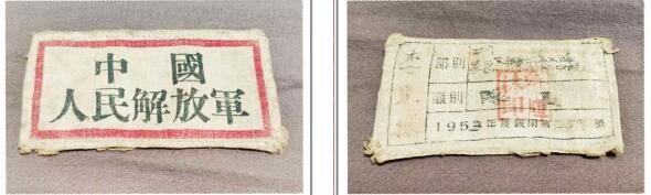 (图1)父亲1953年佩戴在胸前的“中国人民解放军”布料的标志正面影印件;(图2)父亲佩戴在胸前的“中国人民解放军”布料的标志背面影印件,“李東林”三字依稀可见,“東”是“东”的繁体字。